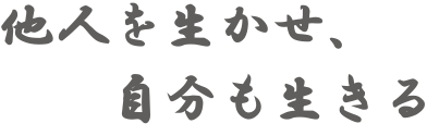 お客様、従業員、地域社会へ貢献を通じて企業の発展を図り、社是である「他人を生かせ、自分も生きる」の実践に努めてまいります。